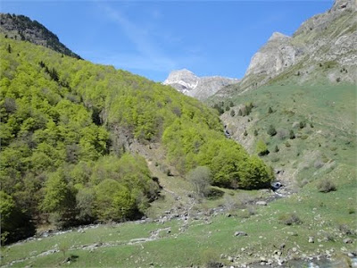 Regressados a Torla e à casa Lordán fizemos mais um percurso com início em San Nicolas de Bujaruelo sempre junto ao Rio Ara até bem perto do maciço Vignemale com passagem em 2 refúgios e na ponte colgante, uma ponte à "Indiana Jones". Não há melhor do que as fotos para descrever a paisagem...