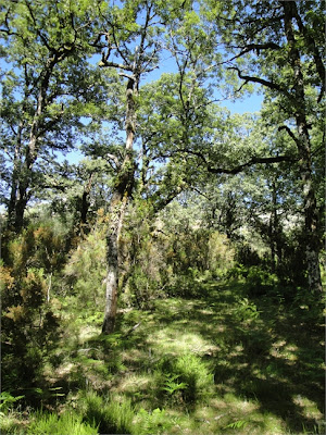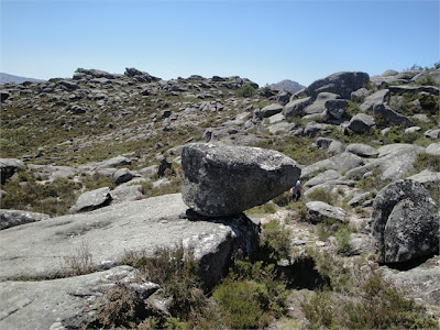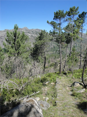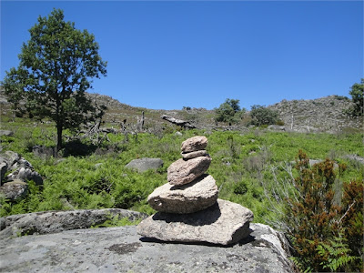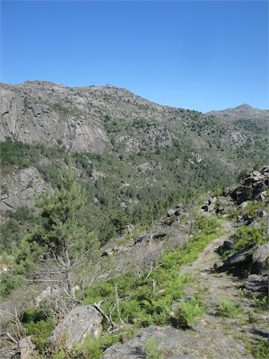 Da última vez que descemos do Pântano para a Peneda tinha saltado à vista um caminho lajeado limpo do outro lado da encosta que saía das proximidades da Peneda e que ia ter a uns belos prados, surgiu o dia para o percorrer. Saímos da Peneda rumo a Salgueiral, a tal zona dos prados, sentido SE e ao chegar aos prados sentido E, sempre em caminho lajeado, com marcações de GR, vermelha e branca, não estou a ver qual seja a GR, encontrei somente o percurso dos Romeiros no site da adere que tem uma parte em comum até onde abandonámos as marcações, passada a zona da Branda do Poulo de Felgueira Ruiva as opções são muitas, seguimos N e passámos por mais uns quantos prados com algum gado e garranos, naquela zona já não tínhamos vista para o Vale onde a Peneda se encontra, então decidimos subir novamente um pouco mais até à linha de cumeada para usufruir das vistas e por ali fomos até Couto do Osso onde a abordagem a Chão da Matança foi muito boa, belo sítio, dali descemos inicialmente por um antigo bosque maioritariamente de carvalho por um caminho perfeitamente nítido e por vezes largo até atingir a estrada que liga Lamas de Mouro à Peneda já depois de passarmos Tieiras, atravessamos o Rio Peneda e seguimos marcações GR até à Peneda maioritariamente na margem direita do rio, já na base do Vale por caminho lajeado e para finalizar um pouco de estrada asfaltada. Bela rota que deixou em aberto mais uma série de zonas a conhecer como por exemplo a abordagem a Pena Calva e à Fraga das Pastorinhas. Dados básicos, distância:12,3km, altitude mín.704m na Peneda e máx. 1170m perto de Couto do Osso.