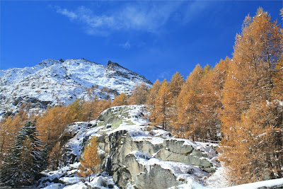 Primeiro dia a caminhar no PN Grande Paraíso, a parte norte encontra-se dividida em 4 vales, dedicámos um dia a cada um deles, Valsavaranche foi o primeiro vale, tentámos ir até ao refúgio Vittorio Emanelle II(2700m) partindo de Pont(1995m), naquele que será, talvez, o caminho mais conhecido em todo o parque, para levar o carro até ao inicio do percurso foi o dia mais fácil, já no trilho, a neve era fresca pelo que decifrar o caminho pelas pegadas foi impossível, mesmo assim, o caminho é largo e até um certo ponto era perceptível, mas a partir dos 2300m vários enterranços até à cintura acabaram por ditar o regresso ao local de partida, com muita pena nossa. Almoçámos próximo do parque de estacionamento e fizémos uma caminhada da parte da tarde em cotas mais baixas, descemos até Eaux-Rosses(1680m) onde estacionámos e começámos a subir até Orvieilles(2168m), uma pequena chã com vista para todo o vale de Valsavaranche, para o Pico Gran Paradiso e os cumes a norte. A subida faz-se entre bosques de coníferas e em cerca de uma hora atingimos Orvieilles, apreciámos a paisagem e regressámos pelo mesmo caminho, o pequeno percurso faz parte também da grande rota Alta Via 2, a fazer. Já no carro, a caminho de Aosta mas ainda no vale, vimos uma raposa sentada a uns 100m da estrada, estacionei e sorrateiramente tentei chegar próximo dela, começou a afastar-se de mim assim que se apercebeu, voltei ao carro e uns 500m à frente vejo-a a correr para próximo da estrada, fiz pisca e ela veio devagarinho até parar a 5m do carro, já era de noite pelo que as fotos tavam complicadas mas por ali ficámos pelo menos mais uns 2minutos a apreciar, ela a aninhar-se, até que se assustou com um autocarro e abandonou. Já os camoscios pela manhã também foi espetacular. Alguns registos do dia e um da raposa.
