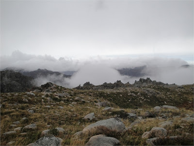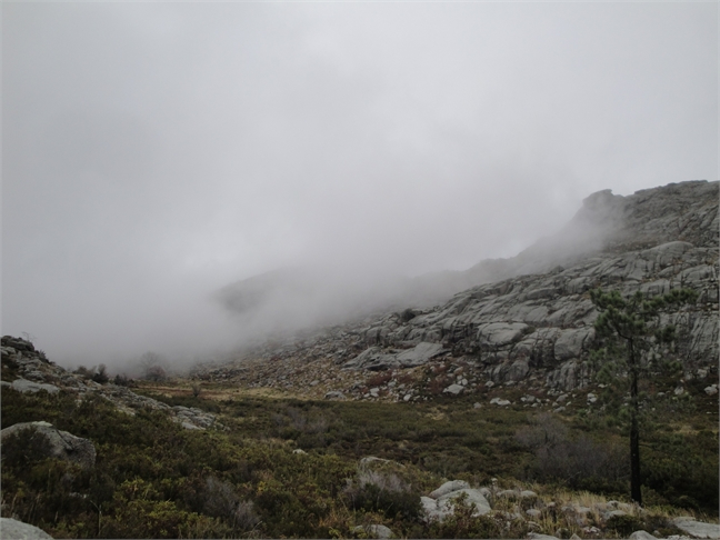 A ideia era caminhar pela zona do Cantarelo mas assim que chegámos aos Prados Caveiros o nevoeiro "abateu-se" e por ali ficou. Partimos da Portela do Homem e subimos pela Costa da Sabrosa, à medida que íamos subindo a chuva ia ficando mais intensa e as nuvens iam subindo e descendo vales sem nenhuma ordem aparente. Terminada a subida, antes de chegar ao Lombo do Burro seguimos as mariolas que saem à esquerda rumo aos Prados Caveiros, ainda aguardámos algum tempo, mas o nevoeiro estava para ficar, descemos pelo lado direito da Ribeira de Monção por uma caminho mariolado embrenhados no nevoeiro, pouco depois terminávamos esta curta caminhada. Alguns registos