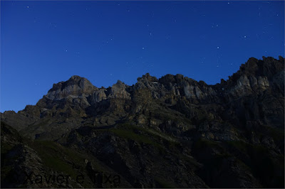 Para a segunda metade desta semana de férias percorremos o belo Tour des Muverans, aqui bem perto de casa, normalmente este percurso é feito em 4 dias, com uma média de 6 horas de caminhada efectiva por dia, aproveitando o facto de estarmos na altura do ano em que os dias são maiores e que são muitos os sítios onde é "possível" montar a tenda íamos tentar fazer as 23 horas de caminhada efectiva em 2 dias e meio, uma vez que íamos bem carregados temos de adicionar algumas horas a essas 23.