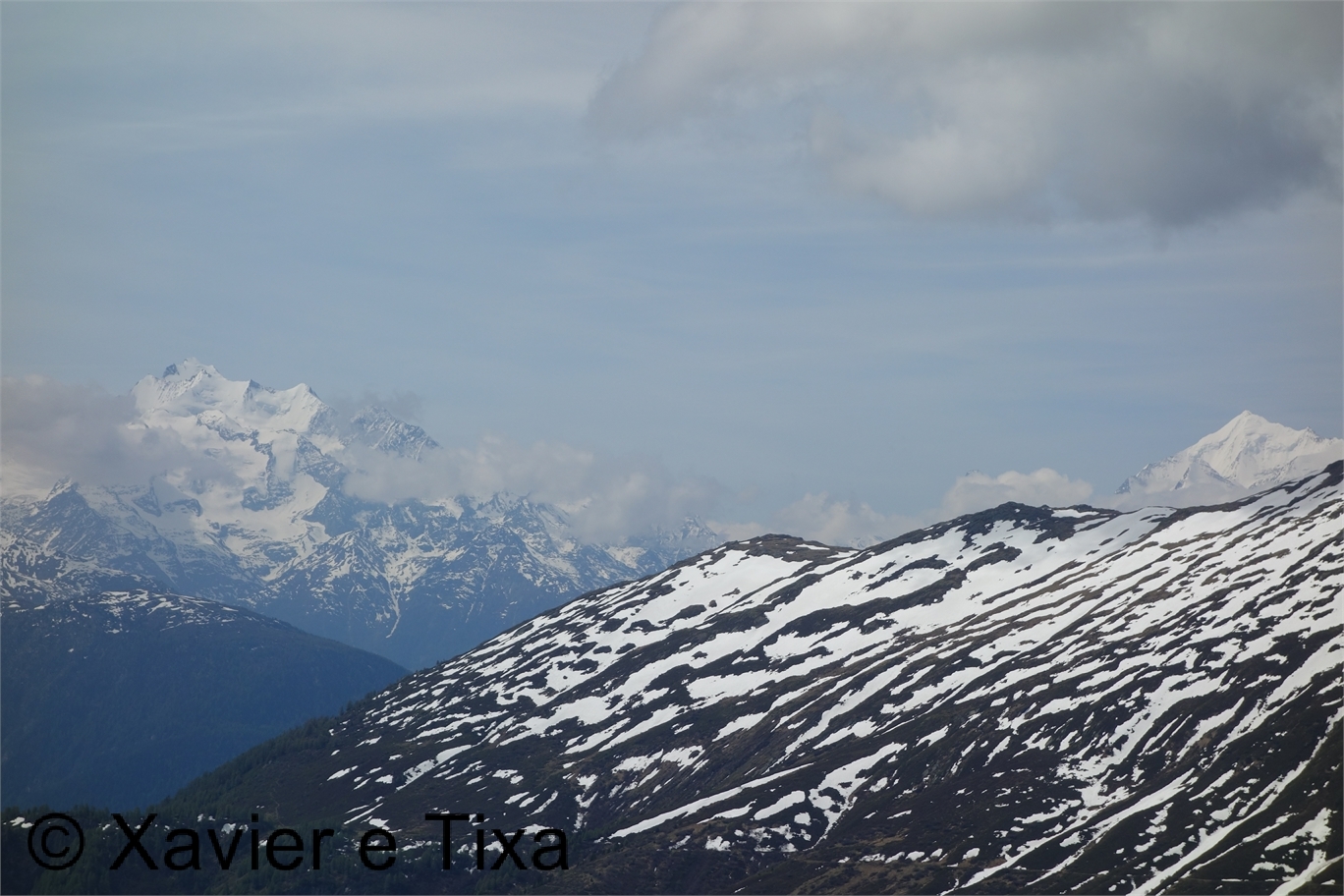 Partimos de Taatsche(1800), onde dormimos, e começamos a subir pelo interior da floresta rumo a Norte, em cerca de meia-hora passamos em Belalp(2094m) onde apontamos ao miradouro Tyndalldenkmal(2351m), ponto mais alto do dia, deste local é facilmente visível o Sparrhorn, um 3000 fácil e que já tem pouca neve, certamente que iremos lá durante este ano, deste ponto vemos também o vale que vamos atravessar assim como um bocado do glaciar Aletsch que se estende por 23km sendo o maior glaciar dos Alpes.