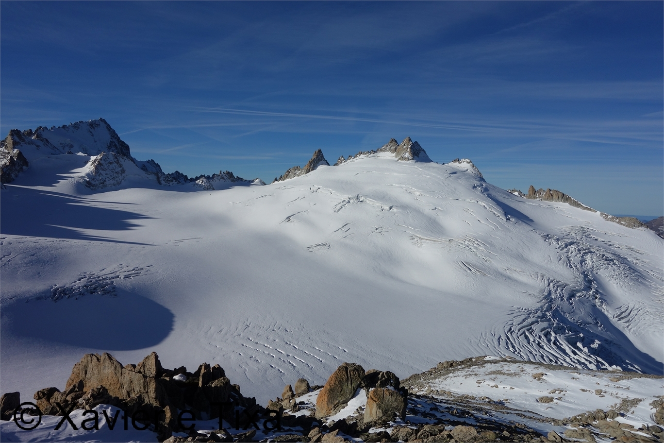 Por volta das 9h tomámos o pequeno almoço e dei uma saltada ao Pointe d'Orny(3270m), um pico facilmente acessível a apenas uns 20 minutos de distância da Cabana du Trient. No Pointe d'Orny estava-se mesmo bem, zero vento e zero nuvens, o calor aquecia bem e não foi preciso muita roupa para me proteger do frio.