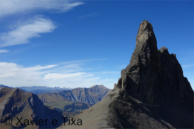Continuamos a seguir as marcas vermelhas e brancas, passamos duas linhas de água e subimos um pouco rumo ao início da aresta Artelengrat, bem interessante esta parte do percurso, caminhamos de frente para o Tschingellochtighn(2659m) onde passo ao lado com 2h30m de caminhada, belo miradouro para o Altels(3629m), Balmhorn(3698m) e o Rinderhorn(3448m) um pouco mais a Sul.