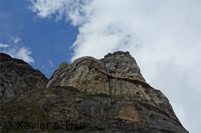 Em Alpe Buscagna(1967m) retomamos as subidas, mais 500m de desnível a vencer até ao Bivaco Combi e Lanza(2403m), apesar de íngreme, a subida faz-se bem até nos aproximar-mos das barras rochosas, a partir daí a utilização dos 4 membros volta a ser útil e necessária, neve nalguns locais também não facilitava a coisa assim como o facto de estar tudo molhado e escorregadio, é incrível como é que esta subida não tem correntes, já as vimos em sítios tão menos expostos.