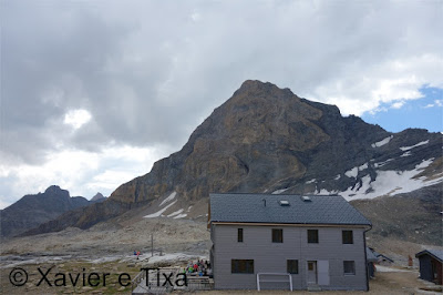 Passámos no refúgio Lotschepasshutte(2690m), situado mesmo no colo Lotschepass, com 3h30m/3h45m de caminhada contando as paragens gastronómicas, ou seja, bem menos que as 4h30m assinaladas nas placas em Ferden(1375m).