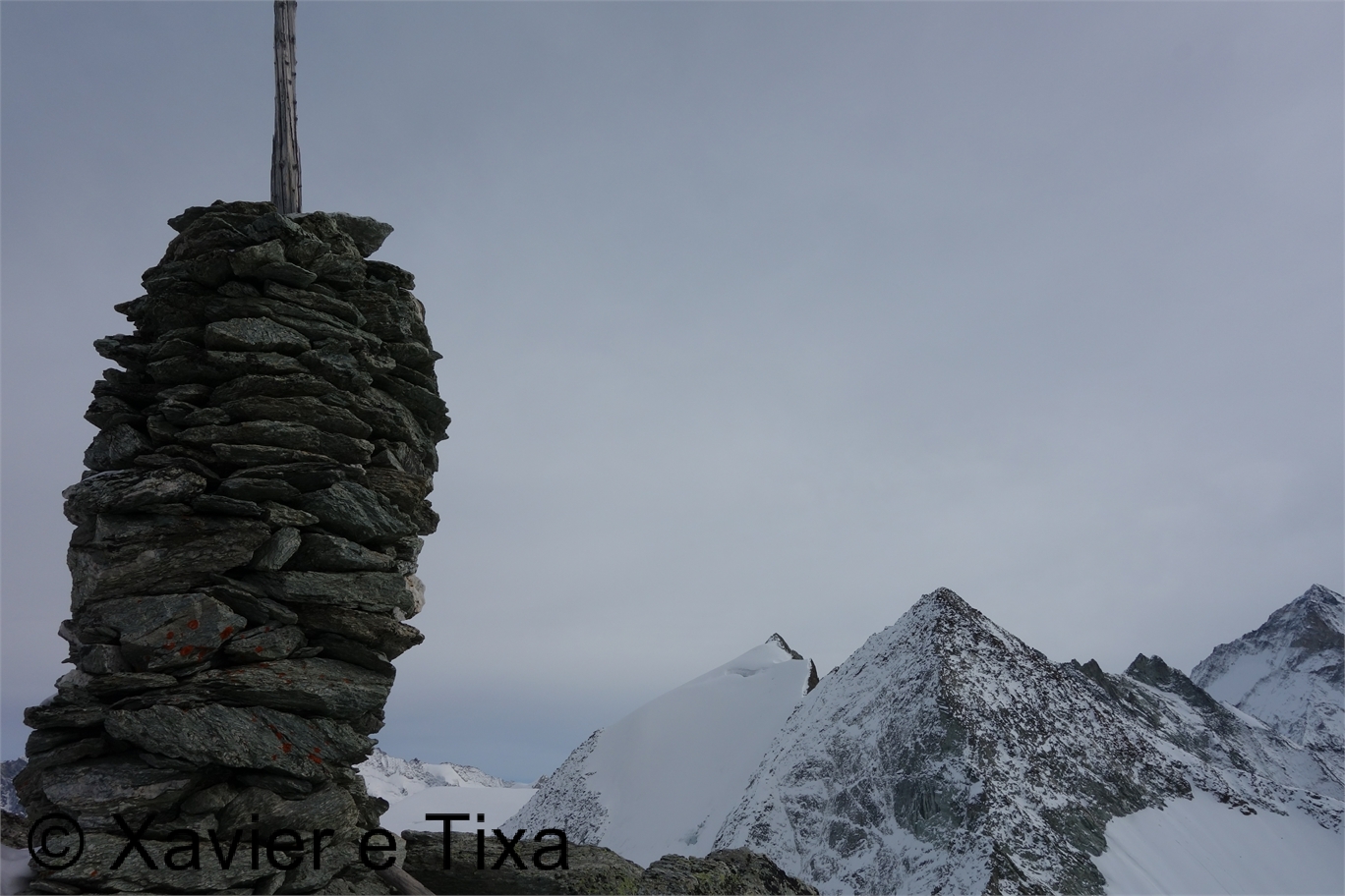 Com 3h30m/3h45m de caminhada chegava ao pico com a Xarah, a Tixa ficou um pouco mais abaixo, aos 3367m estava bem fresquinho. Fiz os meus registos, apreciei a paisagem e iniciei o regresso logo de seguida, nem almocei no pico, o céu já se encontrava completamente nublado e ameaçava nevar, mesmo assim dava para apreciar o que me rodeava, e que vista.