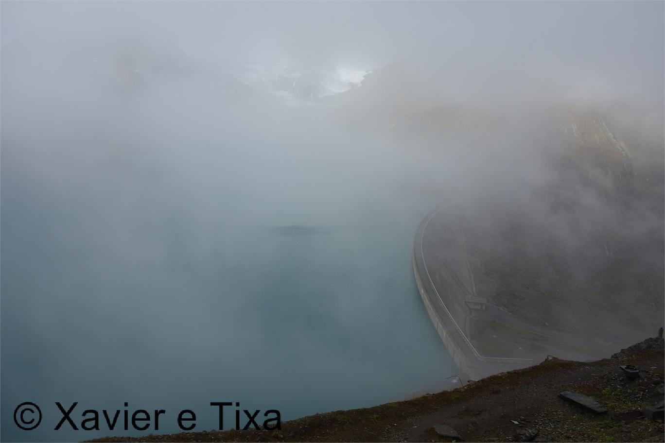 Na sexta-feira que antecedeu esta caminhada dormimos no Nufenenpass(2440m), uma noite bem fresquinha. Quando acordámos o tempo estava como quando nos tínhamos deitado, nevoeiro cerrado, ao menos não chovia. Tomámos o pequeno almoço e iniciamos a caminhada um pouco abaixo do Nufenenpass, em Rossbode.