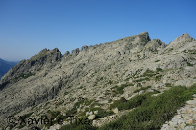 Acordámos novamente às 5, arrumámos a tralha, tratámos do pequeno almoço e às 6 e pouco começámos a caminhar, continuava com uma impressão no braço/ombro mas sem dor, esta etapa 9 começa como eu gosto, saímos do refúgio e ganhamos a aresta, a partir daqui subimos até Punta Muratellu(2141m) fazendo logo o desnível positivo da etapa 9(750m).