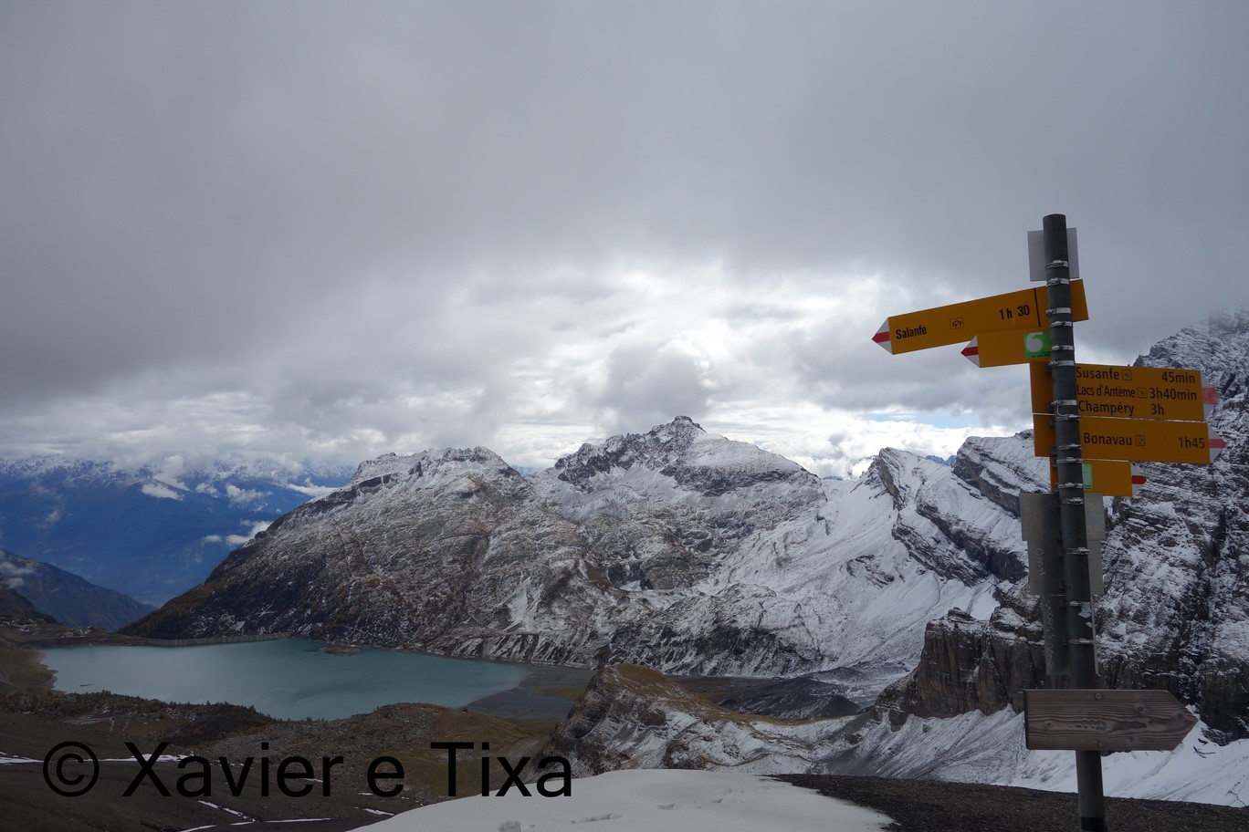 Avancei a um bom ritmo mas chegado ao Col de Susanfe(2493m) o tempo piorou, ainda continuei a subir mas rapidamente abandonei, ia enfiar-me no nevoeiro cerrado e o vento soprava forte.