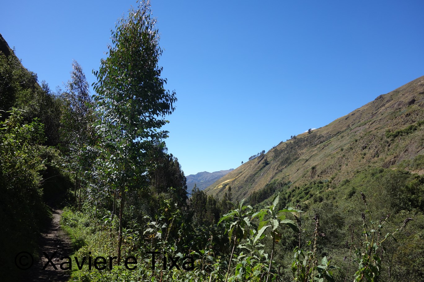 Finalmente em Vaqueria(3680m), metemos creme solar e atacamos a primeira etapa, começamos por descer e passar o rio, contornamos a encosta, passamos novamente um outro rio, passamos em Yanachaca(3440m), a partir daqui o trilho é evidente, até então pode haver alguns problemas na navegação. O trilho passa ainda noutro pequeno povoado chamado Huaripampa(3560m), sempre toda a gente muito simpática, passamos de seguida num posto de controle do PNH onde temos que voltar a mostrar as autorizações, prosseguindo caminhamos pela base do vale a um ritmo tranquilo, 3h30m depois de iniciarmos a caminhada chegamos ao acampamento Paria(3825m) onde damos por terminado este primeiro dia. Esta época apesar de ser o Inverno é o chamado Verão Andino porque nunca chove, mas em TODAS as noites que acampei acordei com a tenda com uma camada de gelo, fruto das noites de céu limpo, o Sol nasce às 6 e põe-se às 18h.