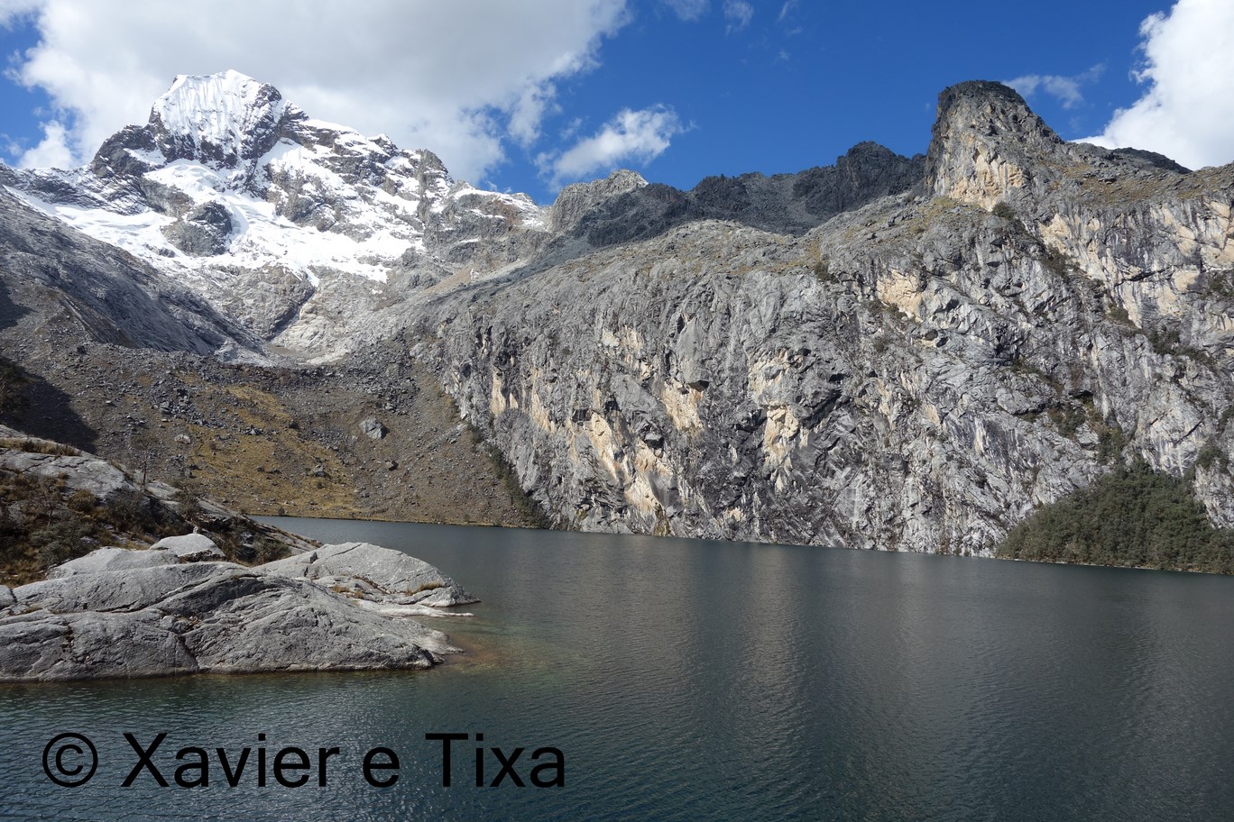 Com 2h10m de caminhada chegamos à simpática Laguna Churup(4450m), ficámos por lá uma hora, tempo para almoçar e apreciar a paisagem.