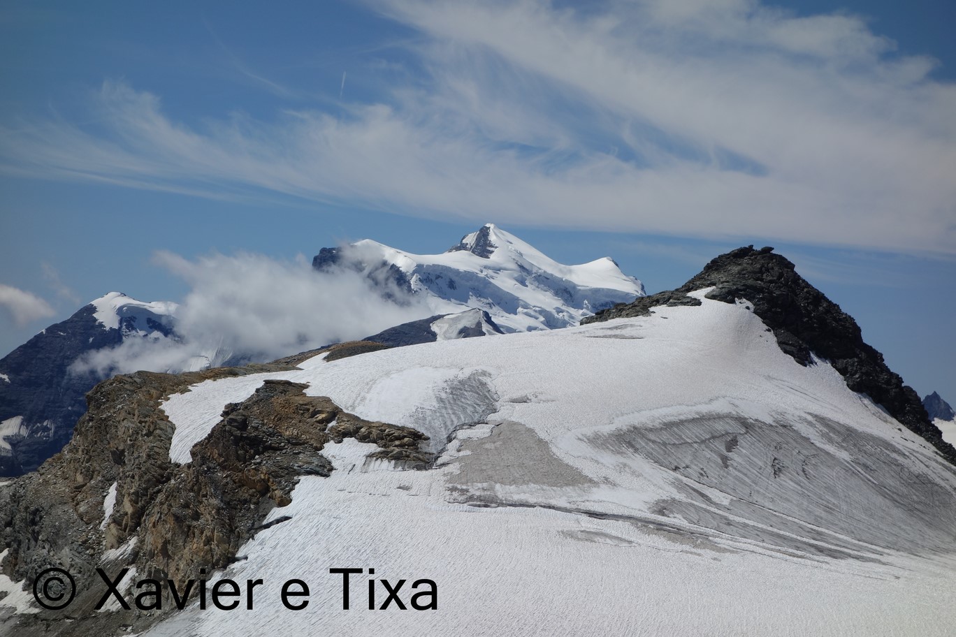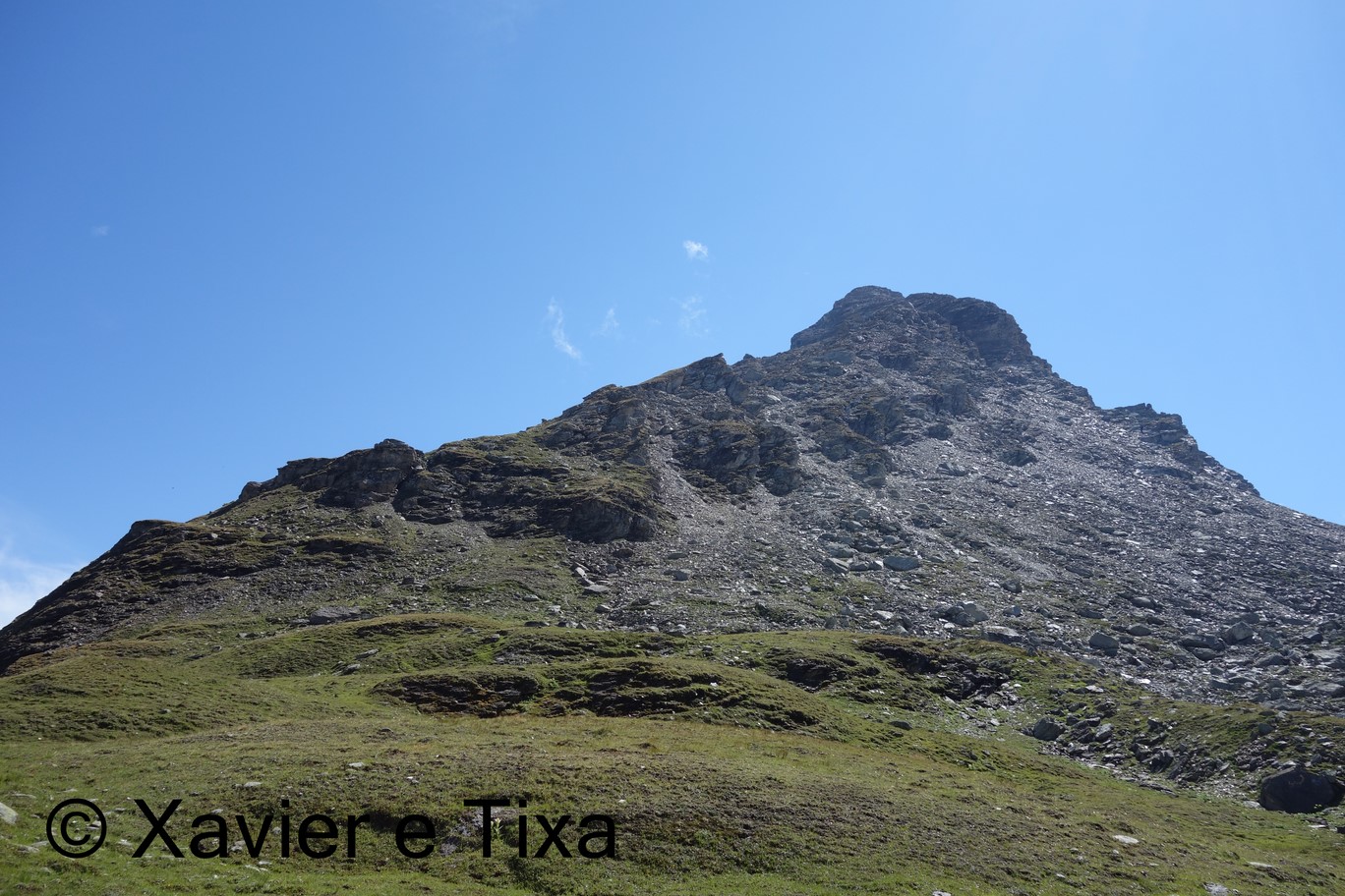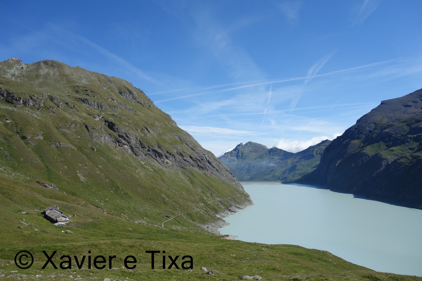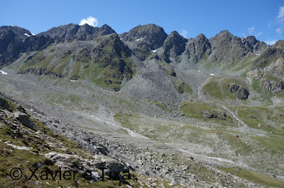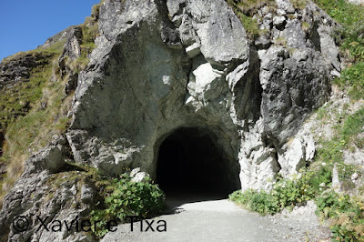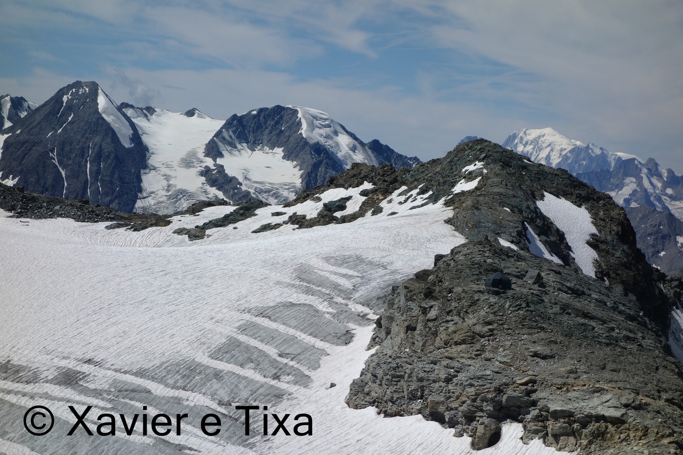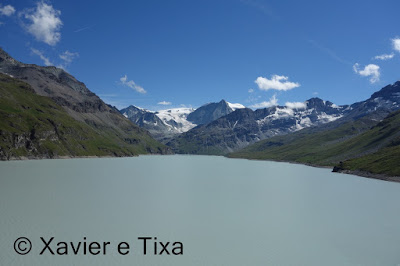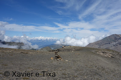 Começo por subir até ao muro da barragem, passo vários túneis, pouco depois passo em La Barma(24587m), aqui devia ter continuado pelo trilho marcado mas abandonei o trilho marcado para ir de encontro à aresta, contornei um pouco a encosta e lá encontrei as marcas azuis e brancas que levam ao refuge Igloo des Pantalons Blancs(3278m), o trilho sobe pela aresta sem qualquer dificuldade técnica até ao Rochers du Bouc(3314m), tem 2 partes com correntes mas são pouco expostas, a única parte técnica é a descida para um colo onde depois passa um pouco do glaciar e sobe para o refúgio, como estava com a Xarah não quis arriscar.