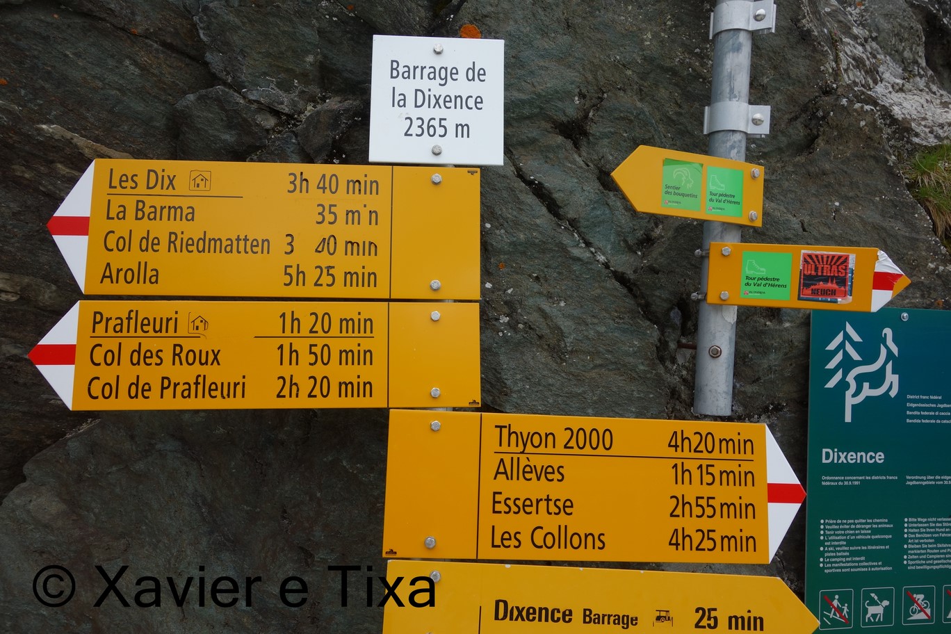 Escolhi novamente o Val d’Hérens, desta feita começámos a caminhar na barragem de Dixence, subimos até ao paredão e continuamos pelo trilho marcado rumo à Cabana de Prafleuri.