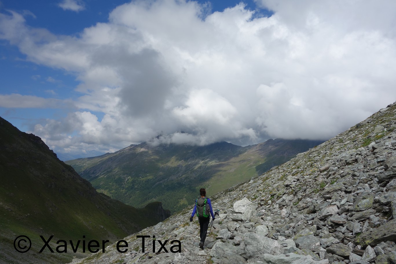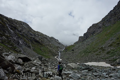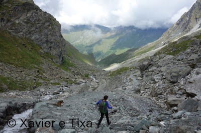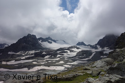 Caminhamos breves minutos do lado direito da barragem e flectimos para norte para entrar no vale Combe de Prafleuri, perdemos alguma altitude e voltamos a subir, aos 2600m numa bifurcação saímos à direita rumo ao Col de Prafleuri(2987m), esta zona tem vários lagos e o trilho é interessante.