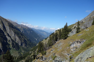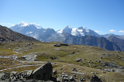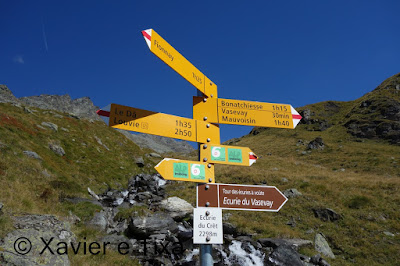 Nova incursão no Val de Bagnes, desta feita para subir ao Pointe du Crêt(3321m), situado no caminho para o Refuge Igloo des Pantalons Blancs, sabia que se tratava de um T5, mas talvez conseguisse evitar as partes delicadas, uma vez que estava com a Xarah.