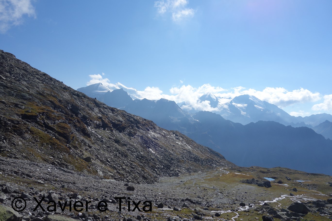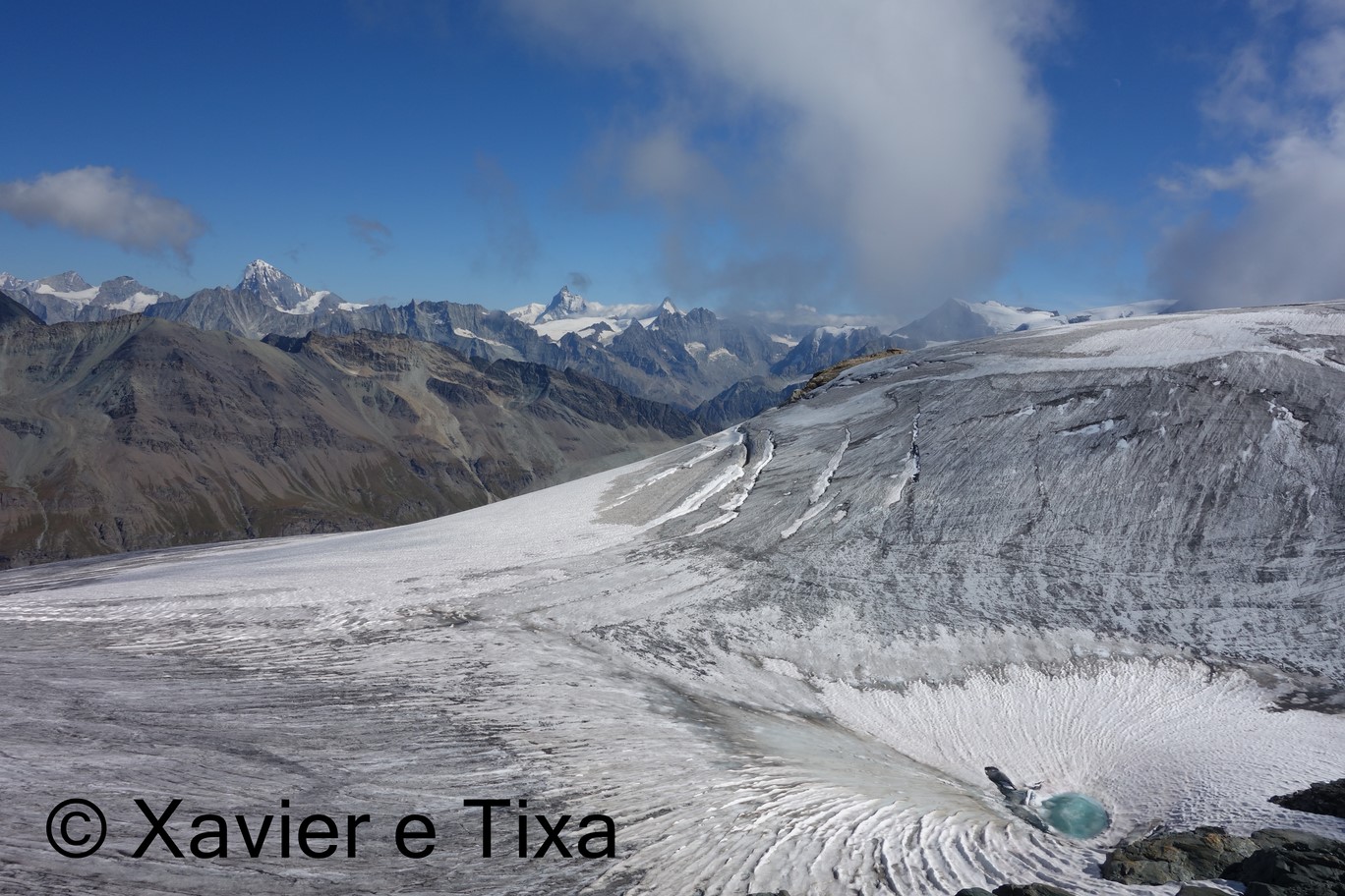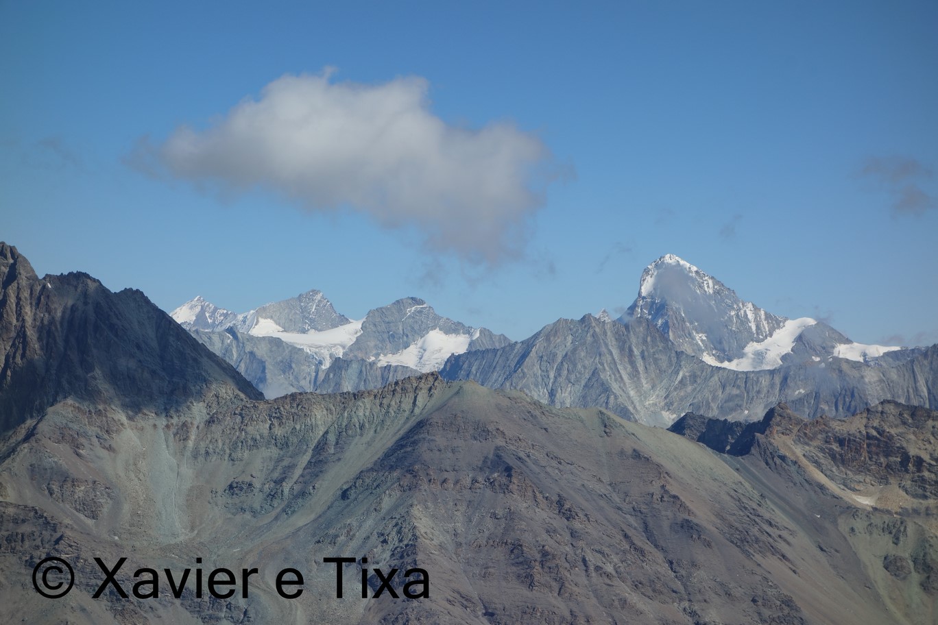 Do colo sigo para Sul, passo por escassos minutos no glaciar des Ecoulaies até ganhar de novo a aresta, entretanto existem vários passos de escalada, impossíveis ou extremamente perigosos para a Xarah, felizmente consegui contornar esses obstáculos passando pelo lado Sul da encosta, sem dúvida um sítio muito exposto à queda de pedras.