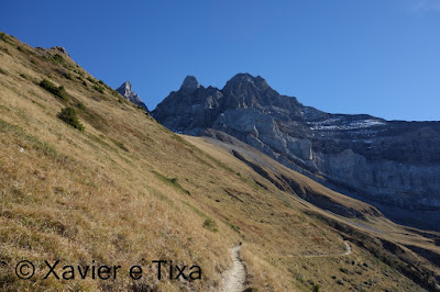 Início a caminhada subindo num estradão até me embrenhar na floresta num simpático trilho de pé posto, subo pela floresta de Sélaire, por volta dos 1800m emergi da floresta e deparo-me com um cenário belo em Sélaire, deste ponto continuo para o Lac d’Antème onde chego pouco depois, aproximei-me da fantástica parede da face norte dos Dents du Midi e subi ao Chaux d’Antème(2180m)