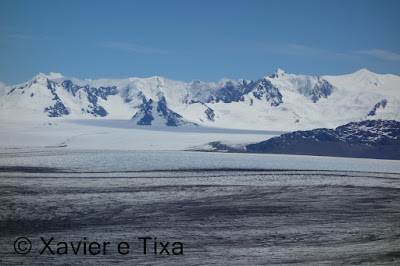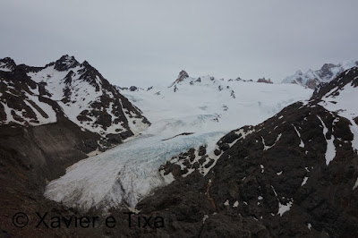Ficámos por ali umas horas até retomar a caminhada, descemos um pouco e caminhamos uma hora e meia paralelos ao gigantesco glaciar Viedma, magnífico.