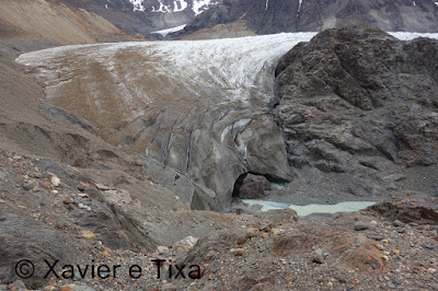 Passada esta parte subimos um pouco e passamos ao lado do glaciar Rio Túnel Inferior, numa parte extremamente perigosa devido a estar exposta à queda de pedras vindas da moreia, tem uma inclinação impressionante.