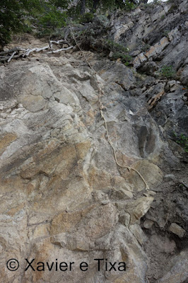 Outra coisa que também não me apercebi é que até lá chegar iria ser uma descida extremamente, repito, extremamente íngreme até chegar a essa Bahia, incluindo partes com cordas onde todo o cuidado é pouco, fiquei impressionado com a inclinação da descida, ainda por cima é em terra batida, ou seja, extremamente escorregadia! É obrigatória muita precaução nesta descida, realmente na carta marca 3 horas para fazer este pequeno bocado entre o Paso Huemul e a Bahia, aí está o porquê!