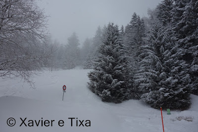 Chegado a Champeronne pensei na possibilidade de continuar para Chanso, como a visibilidade era nula decidi descer logo ali, consegui esquiar até à porta de casa, desta feita a neve estava no ponto, fez bastante frio durante a noite anterior, uma vez mais cheguei a casa com uma banana enorme no sorriso, sair de casa com os skis e poder esquiar até casa é um sonho!