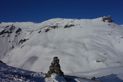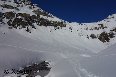 Chegado ao Col de la Roue voltei a tirar as peles, a neve já estava sopa, já eram umas 3 da tarde, a descida é porreira até La Tièche, depois tem uma secção plana onde é preciso progredir com a ajuda dos bastões, seguiu-se a descida pela pista até ao local de início, terminando assim mais um belo fim de semana.