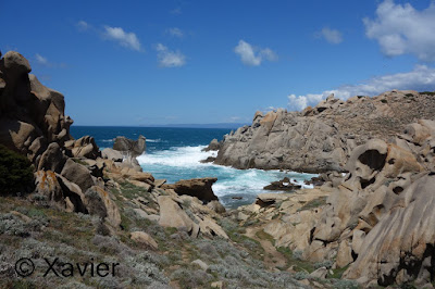Continuámos para Oeste e passamos no pequeno Valle della Luna, logo aí começamos a ficar impressionados com as estranhas e belas formas graníticas, os trilhos são vários e basicamente dá para andar por todo o lado, na ponta norte paramos perto do farol e almoçamos por ali.