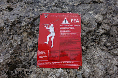 One thing was for sure, we didn't want to sleep in that area, but we had to play it safe because if we continued we would pass another Via ferrata, around 3 pm, in a new calm of time, we started hiking again, we descended to the fork of the trail that descends to San Martino, continue to the Passo di Ball, a few hundred meters after the fork begins another Via ferrata, equipped section and with the void very present, the rock was not very wet, was good news, this part is equally interesting and impressive, never too hard.