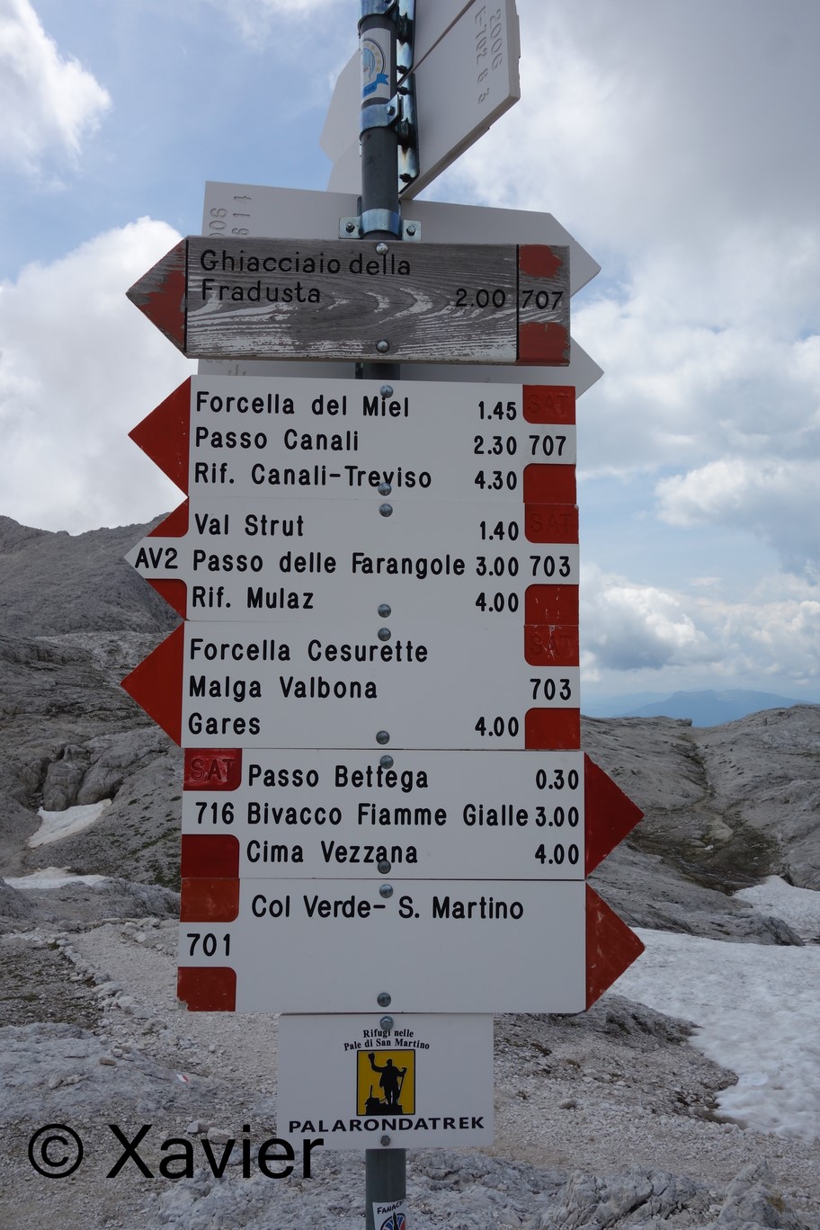 The trail continues up and down until it climbs again towards the Rifugio Rosetta, as there is a cable car a few hundred meters from there we experienced the same feeling when passing the Rifugio Boe, a madness of people everywhere, we had lunch in the Refuge and we had to go inside the refuge because it started to rain.