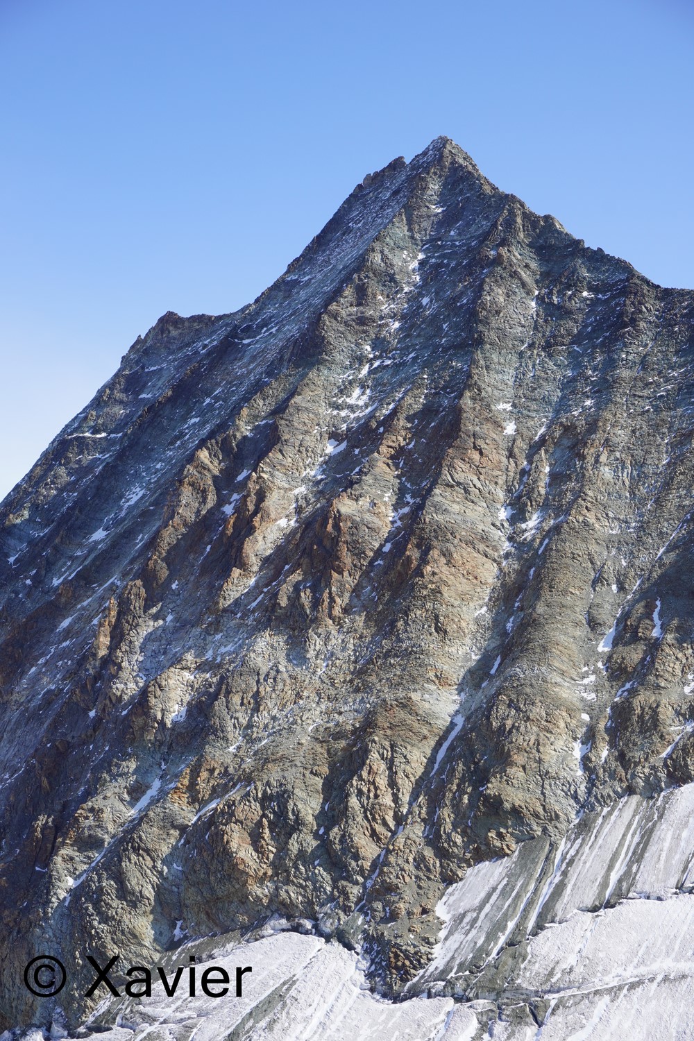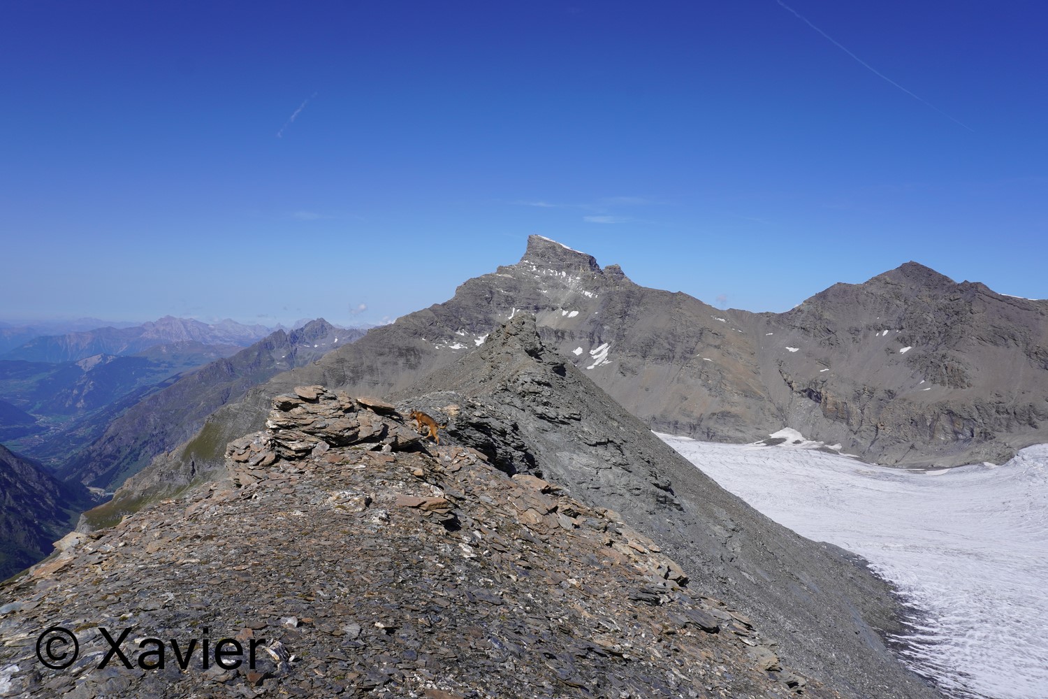 I did a pause of about one hour at this summit, conditions were top, then i continued to north, sometimes is better to get out of the edge of the ridge to avoid some delicate sections, after i reach Col du Giétro at 3104m, that’s where the descent to écuries du Giétro starts. 900m of altitude separate this 2 points, i did not see cairns so went down by the easiest way, no path at all and sometimes quite steep.