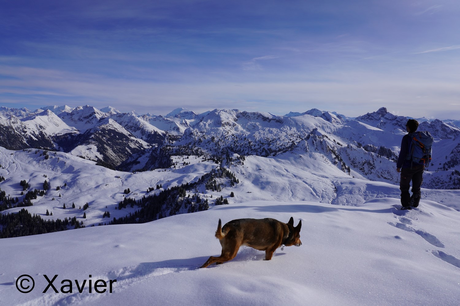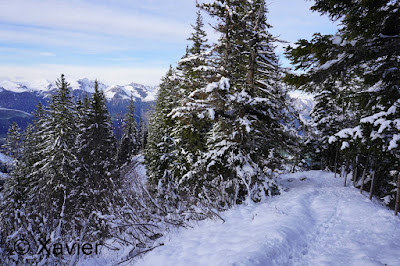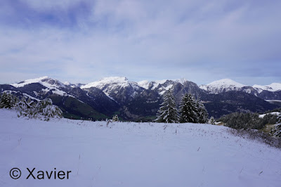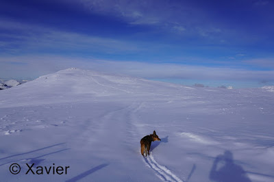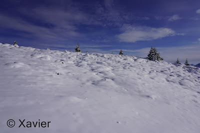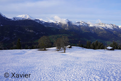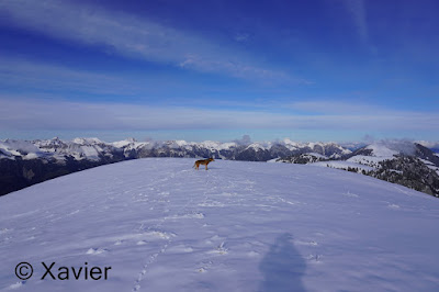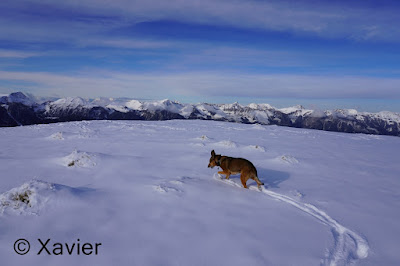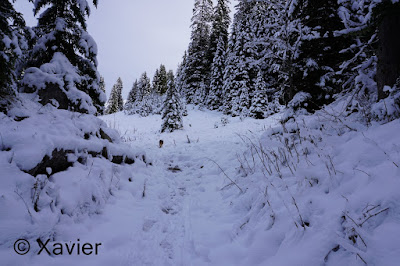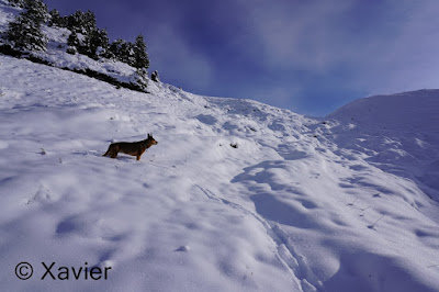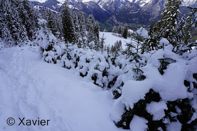 I start the hike at Boltigen(810m), at the train station parking, follow the signposts Niderhore, cross the main river and start to gain altitude in a nice forest, i passed Eggefang and follow the route until Langgrue(1500m), then the path goes through a nice path in the forest until Bodeli(1670m), after that the path goes by the middle of the valley between the ridge of Niderhore and Eselsgrind, i continue south towards a small col where there was about 50cm of fresh snow, with Xarah, my awesome dog we had a lot a fun, even if i need to make the path.