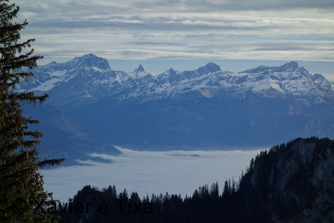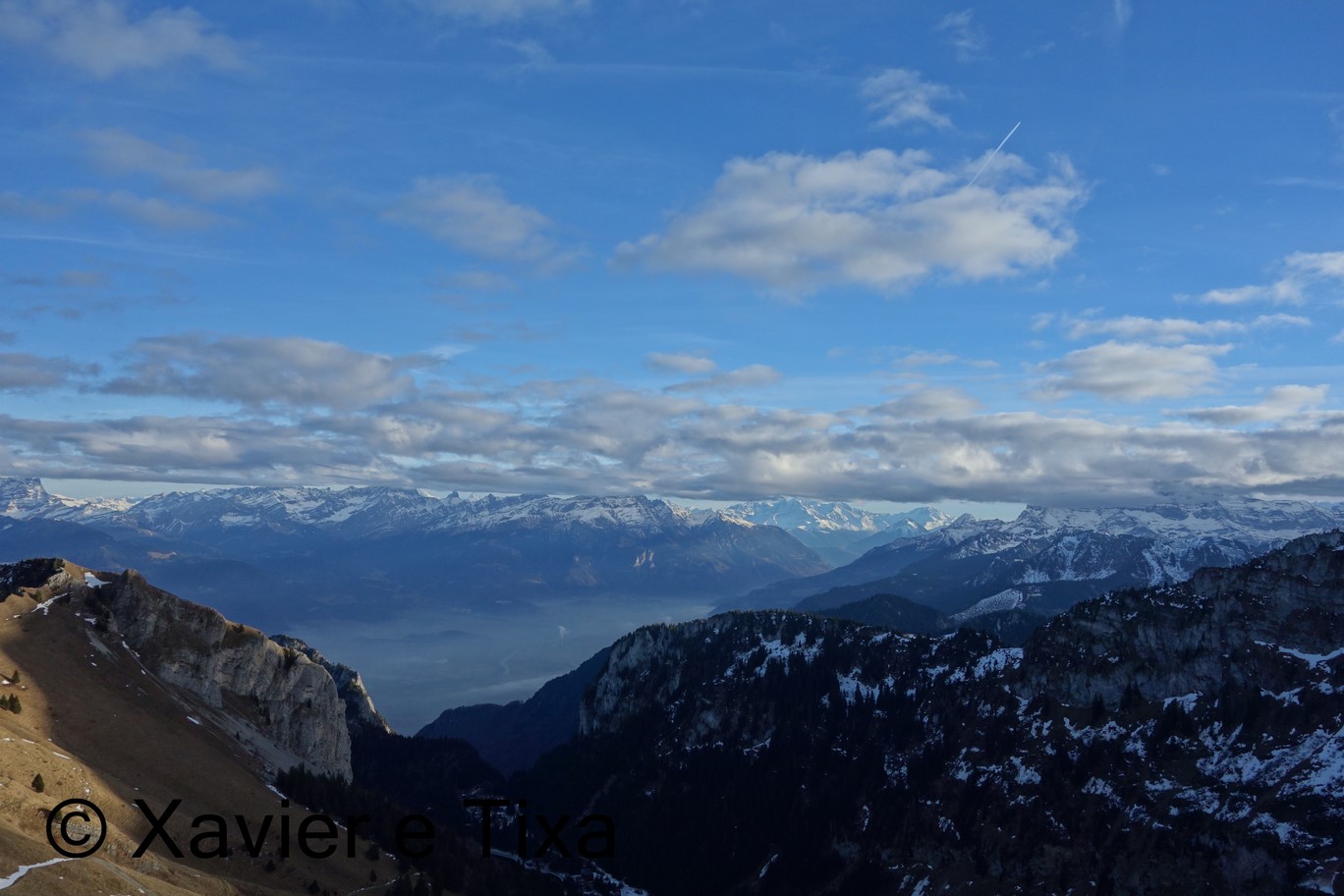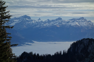 Neste dia repetimos a subida ao Alamont e ao Le Grammont, é um percurso bem simpático e a descrição do percurso é a mesma que a de este dia. O dia começou com céu limpo mas quando chegámos ao Le Grammont(2172m) o céu já se encontrava completamente coberto, estávamos entre duas camadas de nevoeiro, umas aos 800m e outra aos 3000m.