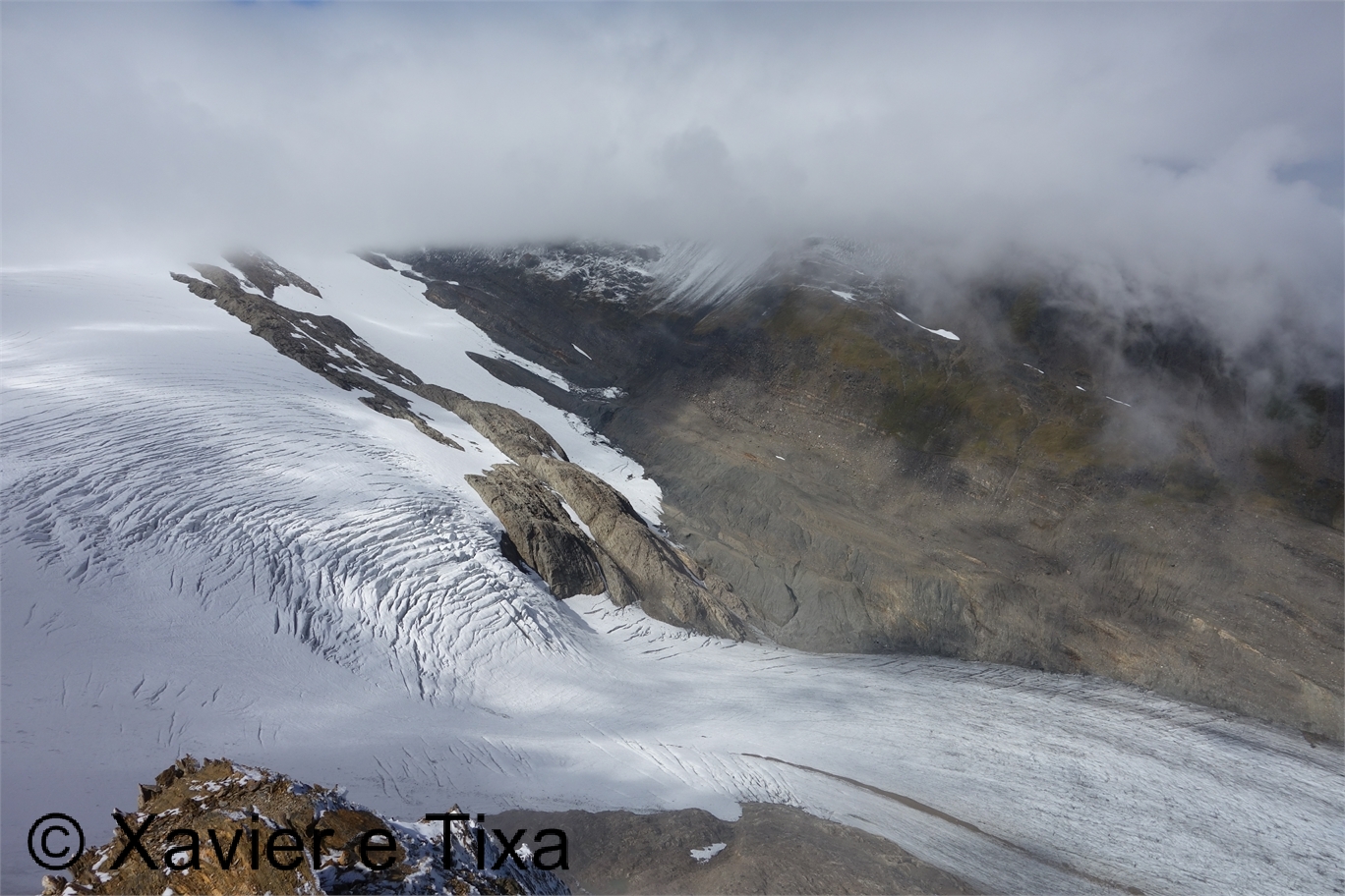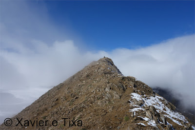 Começamos por ir em direcção ao Griessee(2386m), onde chegamos rapidamente, dali apontamos ao Griespass numa altura em que emergíamos do nevoeiro. Passamos no Griespass(2487m) com uma hora e pouco de caminhada, neste local o vento soprava fortíssimo e bem frio, no colo é bem visível o Battelmatthorn/Pointe des Chamois(3044m), continuamos para oeste pelo trilho marcado e subimos para o ombro sul do Battelmatthorn abandonando o trilho marcado, uns 40 minutos depois chegava ao pico onde estava um frio daqueles, a vista para o Griesgletscher é fantástica, para sul, cantão do Ticino, o nevoeiro tapava a paisagem, tive no pico algum tempo e iniciei o regresso pelo mesmo caminho.