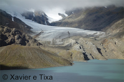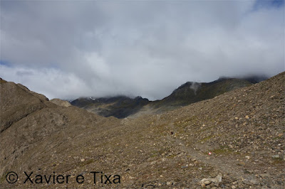 Na sexta-feira que antecedeu esta caminhada dormimos no Nufenenpass(2440m), uma noite bem fresquinha. Quando acordámos o tempo estava como quando nos tínhamos deitado, nevoeiro cerrado, ao menos não chovia. Tomámos o pequeno almoço e iniciamos a caminhada um pouco abaixo do Nufenenpass, em Rossbode.