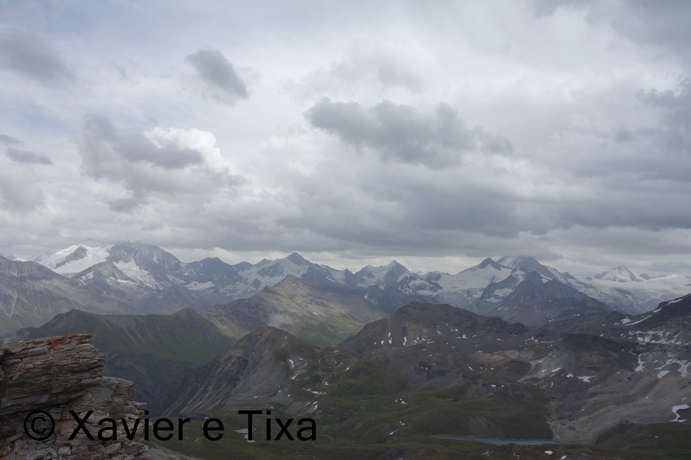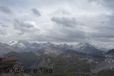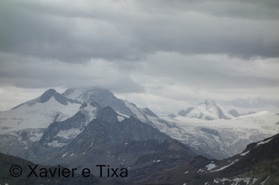 Desta feita não a levámos, o percurso foi basicamente o mesmo, começamos do parque de estacionamento da Cabane Becs de Bosson, em meia hora passamos em L'A Vieille, uma hora depois no Pas de Lona e meia hora depois no Col Becs de Bosson, do colo ao pico são uns 25 minutos, chegado ao pico o tempo ameaçava chuva, via-se que estava por perto, este Becs de Bosson(3148m) é um T4 interessante, alguns registos e retomei a marcha, desci pelo mesmo caminho até ao Col Becs de Bosson, dali apontei à cabana com o mesmo nome, dei uma saltada ao Pointe de Tsevalire(3023m) onde pude observar um gypaette barbu. Continuei pela aresta e a partir dali é sempre a descer. Com 3h55m, 14km percorridos e 1200m de desnível, regressava ao local de partida.