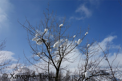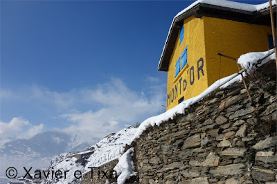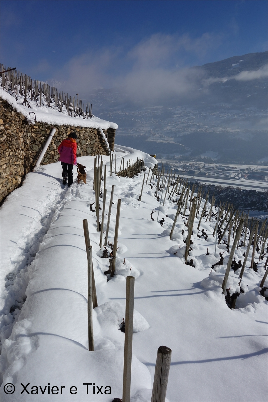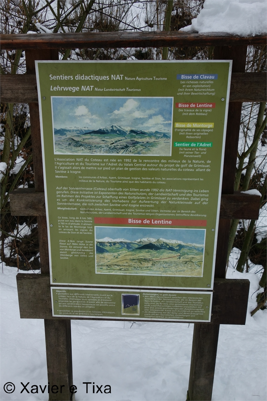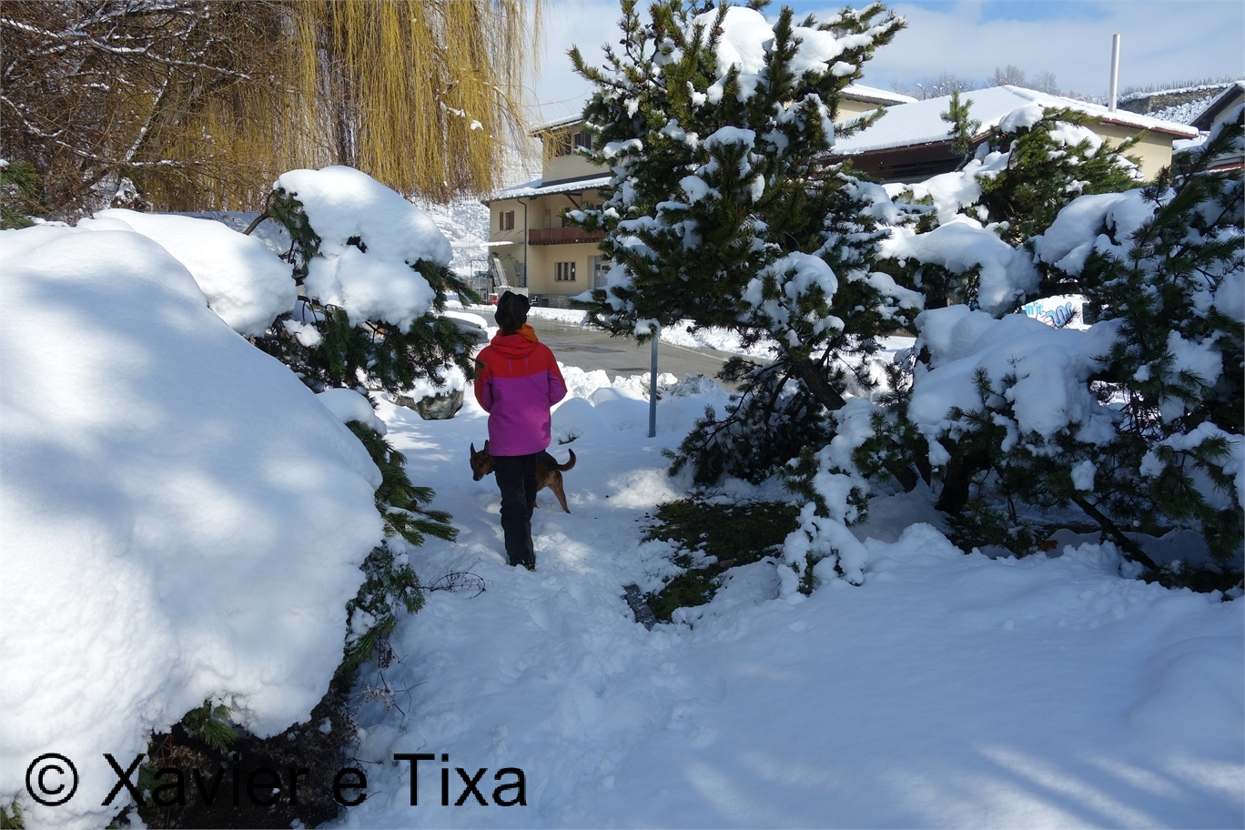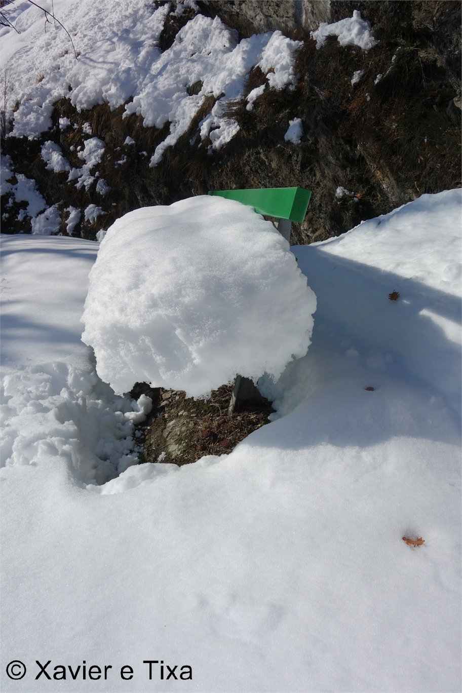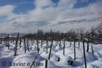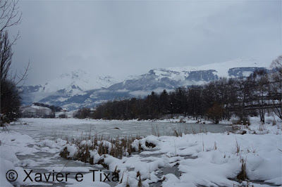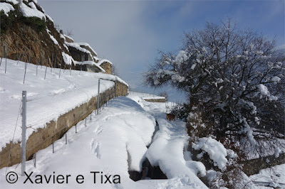 Começamos a caminhar em Pont de la Morge(502m) situado na base do vale do Rhône, logo ali tínhamos acumulações de neve de 20cm, neve fresca e então com o céu azul o cenário estava especialmente bonito o que nos fez demorar um tempão a percorrer os primeiros kms da bisse du Mont d'Orge, à medida que íamos ganhando altitude suavemente e contornando a encosta Sul do Mont d'Orge as vistas iam-se alargando, com Sion a escassos kms.