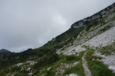 The cable car takes us to Plose 2000m, where we officially started Alta Via 2, the hike to the Plose refuge (2446m) is not mandatory but we went in that direction, the sky quickly got covered and when we passed the Plose refuge the sky was completely covered, we continue on the edge to SE for a few moments down the trail n.6 followed by n.14, at 2300m we turned to SO and lost some 250m until finding the track n.4, we passed a road and continued on path n. 4, which ends on a road where we walk for about 1km until it goes to the SE towards Forcela de Putia, we climb through the forest in the first phase and then the trail goes through a small valley until it reaches Forcela de Putia (2357m). The weather seemed to be improving, from this point the trail n.4 continues south to Rifugio Genova (2297m) after passing the Furcela de Munt de Furcia (2340m).