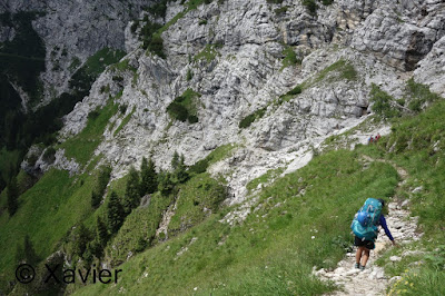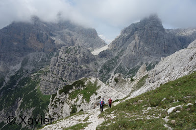 after a big pause we continued to the second part of this day's walk, around the slope and back up Col dei Bechi to leave this beautiful circus where the Bivacco Feltre is located, in this Col you can see the continuation of the trail and it is visually impressive to see where it passes, the trail continues up and down, all the exposed parts are equipped.