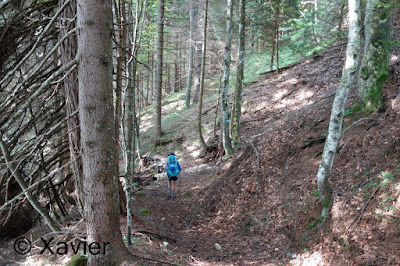 After a nice breakfast we left the Rifugio Cereda, crossed the road and started walking in a forest, lost altitude until 1300m, we left the road a little further and we plunged into the forest again on a nice footpath where we gained altitude , after 20 minutes we left the forest zone and started to evolve in a very rocky area until we meet a kind of crack, from this point the hike continues against the wall, all the delicate passages are equipped, sometimes the void on the left side is inevitable.
