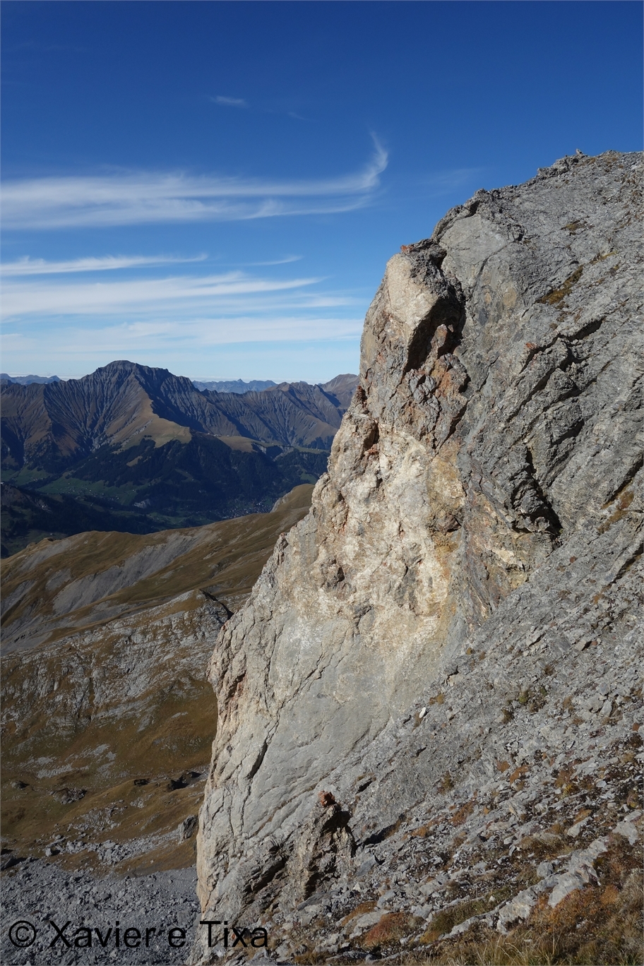 Neste pequeno pico arredondado ficamos mesmo ao lado  do pico que domina esta aresta, a face Este é completamente vertical. Continuo para Sul e percorro a larga aresta até ao Chindbettipass(2623m), aproveitei a proximidade e subi ao Chindbettihn(2691m) situado mesmo ao lado do colo. Feita a visita a este pico desci novamente para o colo e daí para Engstligenalp(1940m) onde flecti para Este para descer pelo mesmo caminho mas a um ritmo bem mais acelerado. Terminava assim mais um belo fim de semana com duas belas caminhadas.