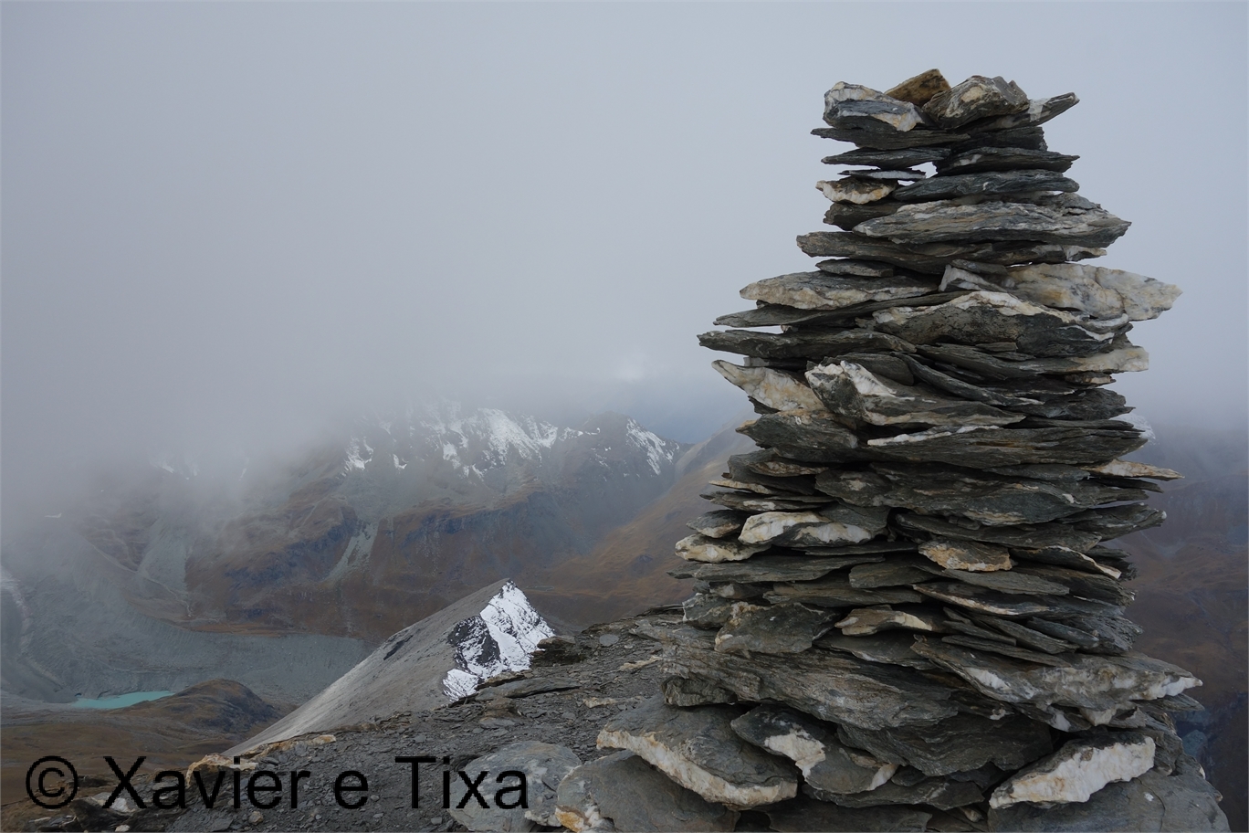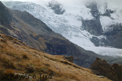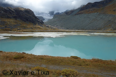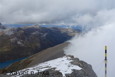 O frio veio para ficar, chegámos ao lac de Moiry(2300m) às 10 da manhã, chovia um pouco e passados 5 minutos começou a nevar, não eram essas as previsões, aguardámos um pouco e ao meio dia lá se via um pouco de céu azul, tínhamos pensado numa volta circular mas como já era tarde decidimos atacar este pico pelo caminho mais curto.