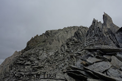 Atingida a aresta passo para o cantão de Bern, as mariolas continuam na face Oeste da aresta até um último ressalto que antecede o pico, nesta parte passei para o lado Este, um pequeno passo de escalada e ataco a parte final da ascensão.