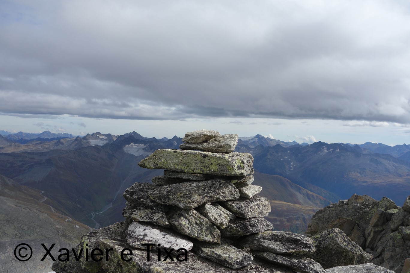Atingido o pico o cenário é fantástico, uma vista completa sobre o glaciar do Ródano, o "pai" do cantão do Valais. Fiquei por ali uma boa meia hora a contemplar e entretanto o tempo ameaçava chuva vinda do Grimselpass.
