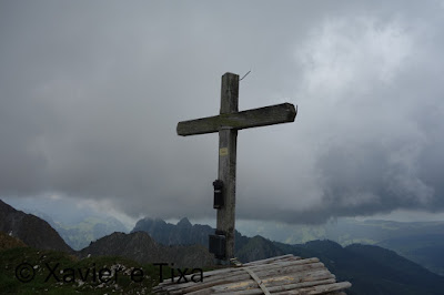 Do topo deste corredor ao pico Schopfenspitz(2104m) demorei uns 20 min, quando cheguei ao pico o tempo continuava a degradar-se, olho bem para a face Sul e vejo pessoas, ok é por ali que tenho de descer.