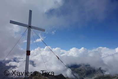 A subida final para o pico é fácil, com 2h40m de caminhada passava no Gross Muttenhorn(3099m), o céu manteve-se todo o dia nublado, pena não poder usufruir do panorama deste simpático T4.