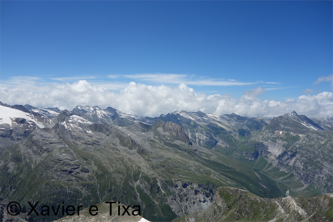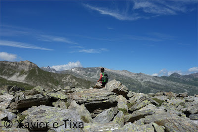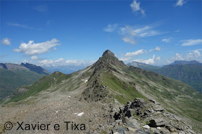 Com 2h45m de caminhada chegávamos ao pico Fanellhorn(3123m), andavam por ali alguns caminheiros, tudo bem disposto, a vista é muito bonita e em toda a volta não se vê nem teleféricos nem aldeias, dando um aspecto selvagem. Almoçámos por ali em t-shirt e ficámos por ali uma hora a admirar a paisagem.