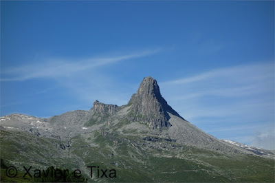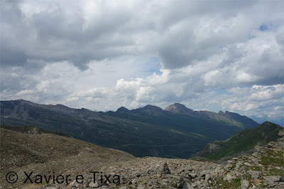 Na Sexta-feira que antecedeu o fim de semana fomos dormir ao Oberalppass(2044m), fronteira entre os cantões Uri e Grisons, a 3 horas de distância de Monthey(Valais). Já tínhamos estado neste colo mas nunca tínhamos ido para leste. Partimos em direcção ao vale de Vals, lá chegados fomos bem informado no posto de turismo e ficámos logo ali a saber que existem na área 3 picos com mais de 3000m com trilho marcado até chegar aos mesmos, a ideia não era ficar por ali os 3 dias pelo que escolhemos um, o Fanellhorn(3123m), subimos de carro até onde é autorizado(1984m), um parque de estacionamento acima de barragem de Zeivrela, o parque estava bem composto, a zona é bem bonita.