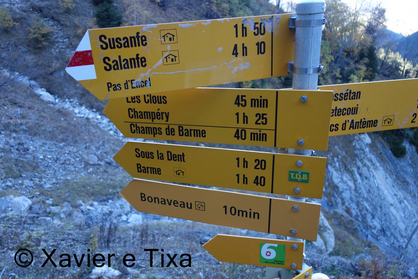 Comecei a caminhar às 9 da manhã, subo pela floresta a um bom ritmo e em menos de uma hora passo em Bonavau, continuo para o Pas d'Encel, parte técnica com correntes.