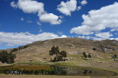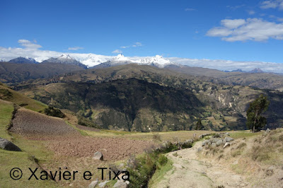 Com 2h de caminhada chegamos a esta simpática lagoa Wilcacocha(3725m), situada na Cordilheira Negra, por onde andava Maria, a simpática Quechua que passeava por ali o seu amigo lama de nome Alfredo, Maria cobrava 1 sol(25 cêntimos) por cada foto ao seu lama, por ali também andavam vários cães simpáticos que se aproveitavam da comida dos turistas.